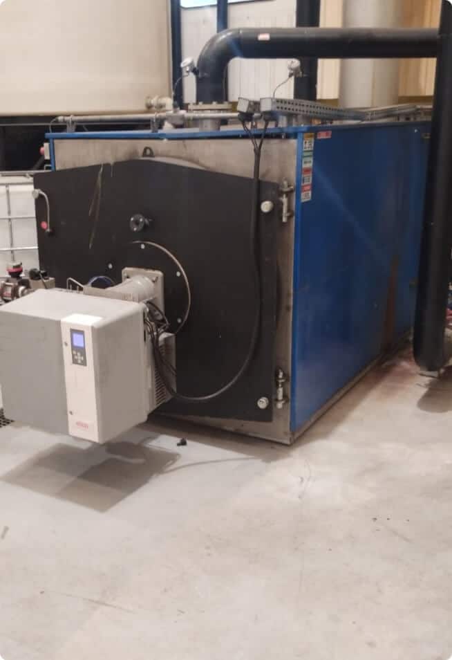 O boiler trabalha em conjunto com o queimador e é responsável pelo aquecimento do produto químico dos tanques que necessitam de temperatura elevada.